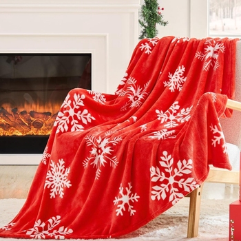 Manta acogedora de Navidad de 50 "x 60" con diseño de copo de nieve rojo