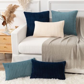 Funda De Almohada suave a rayas peludas, fundas de cojines para sofá, sofá, decoración de dormitorio