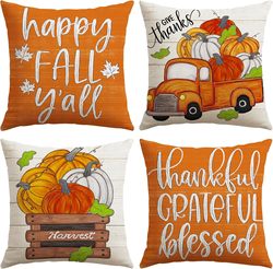 18x18 Acción de Gracias Buffalo Plaid granja naranja calabaza al aire libre otoño camión otoño fundas de almohada para decoración del hogar